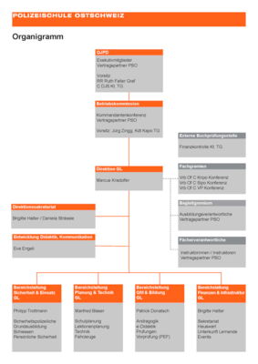 Die strategische und politische Verantwortung liegt bei der Konferenz der kantonalen Justiz- und Polizeidirektorinnen und -direktoren der Ostschweiz. Die operative Verantwortung obliegt der Konferenz der Polizeikommandanten der Vertragspartner sowie dem Direktor der Polizeischule.